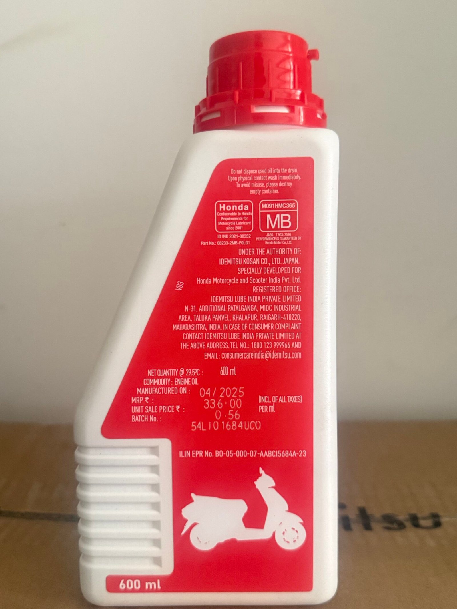 Maintain peak performance and extend the life of your Honda motorcycle with this high-quality, Honda-compatible lubricant. Engineered to meet Honda’s stringent standards, this product is designed to ensure smooth engine operation, reduce wear, and maximize efficiency. Whether you’re commuting daily or embarking on long adventures, this lubricant is ideal for delivering unparalleled reliability and consistency.